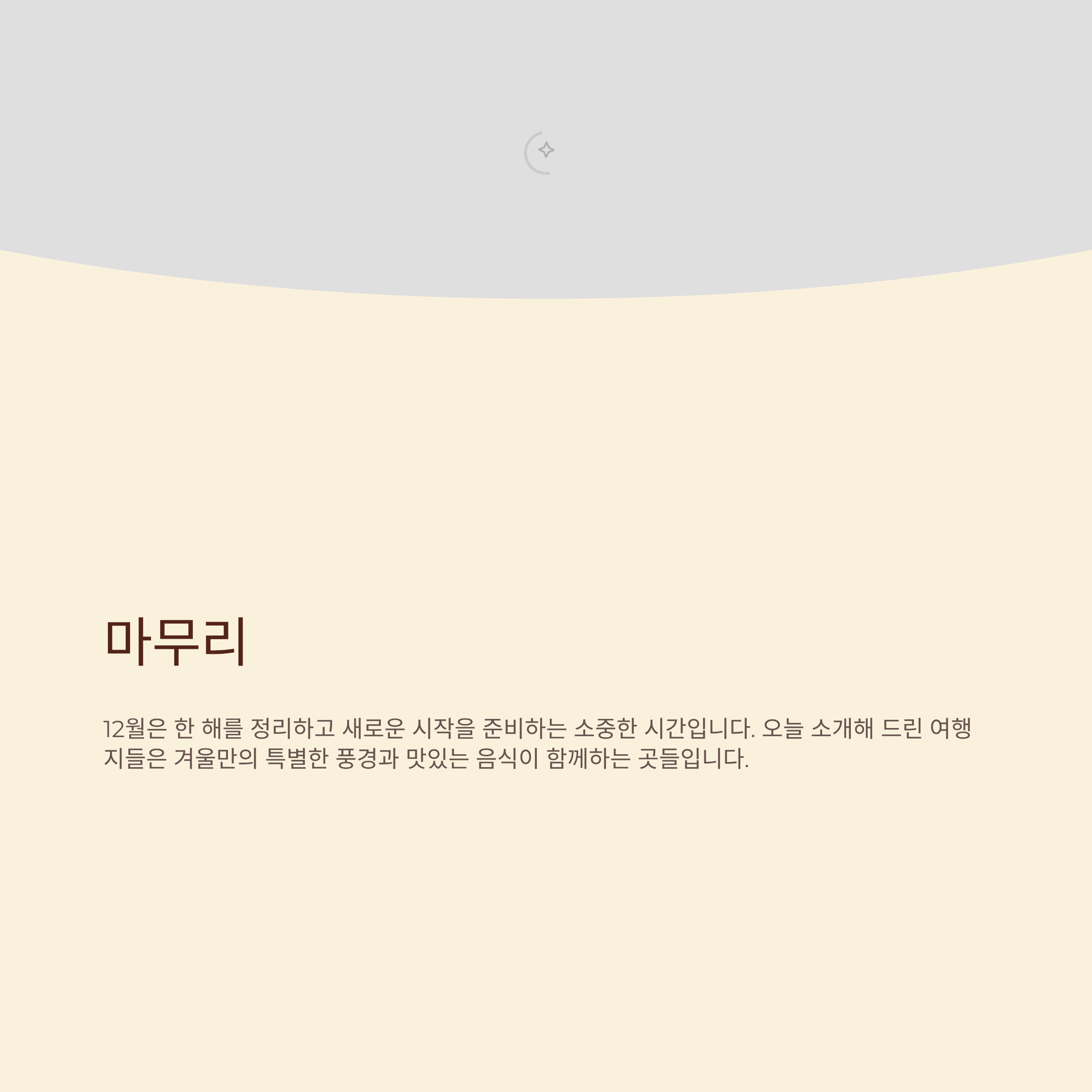 12월은 겨울을 알리는 찬 바람과 함께 한 해를 마무리하는 낭만이 공존하는 달입니다. 하얀 눈이 소복이 내려앉은 숲길을 걷고 싶을 때도 있고, 따뜻한 온천물에 몸을 녹이며 피로를 풀고 싶을 때도 있죠. 혹은 인파를 피해 조용한 겨울 바다를 바라보며 사색에 잠기는 것도 12월에만 누릴 수 있는 특권입니다.