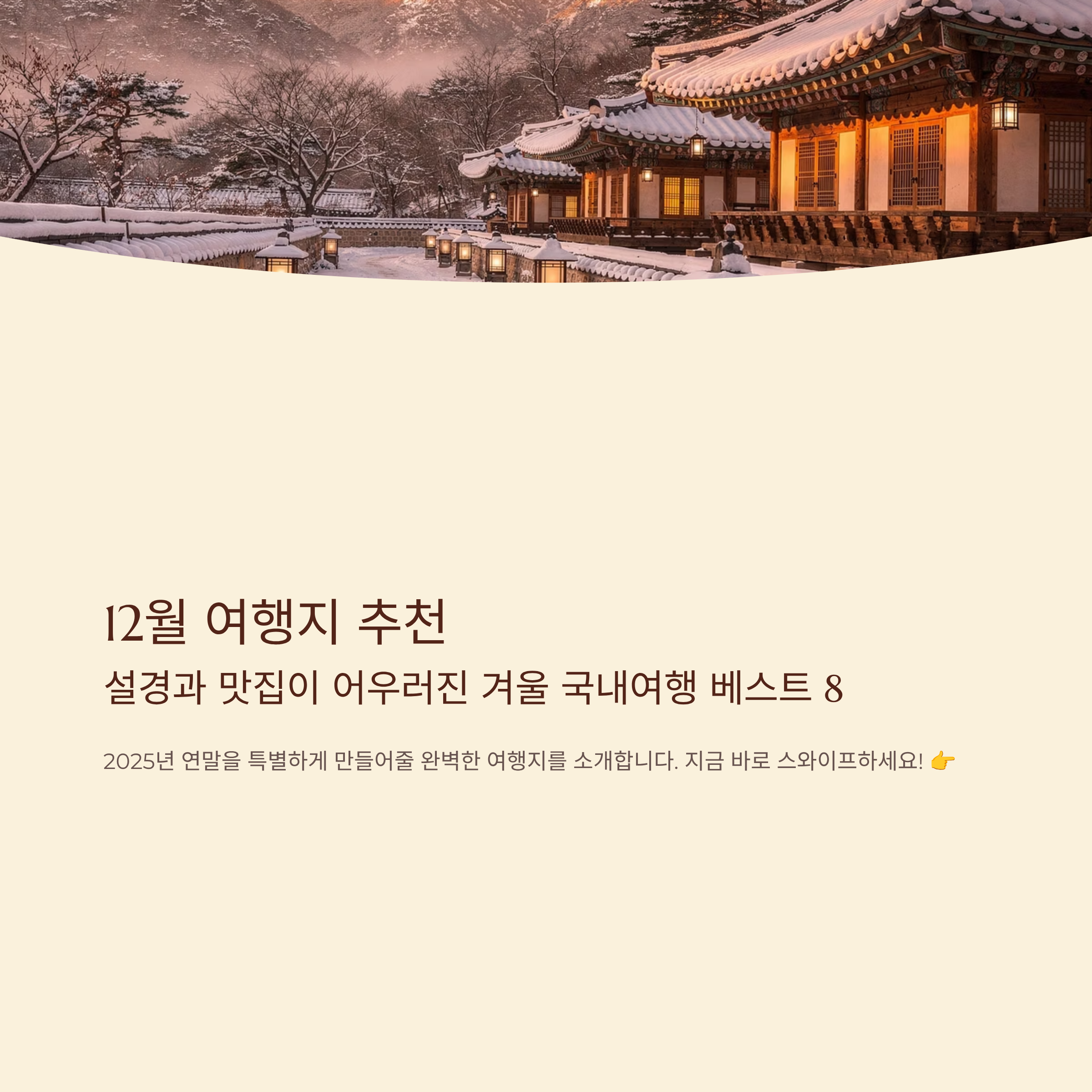 12월 여행지 추천: 설경과 맛집이 어우러진 겨울 국내여행 베스트 8 (2025 최신)