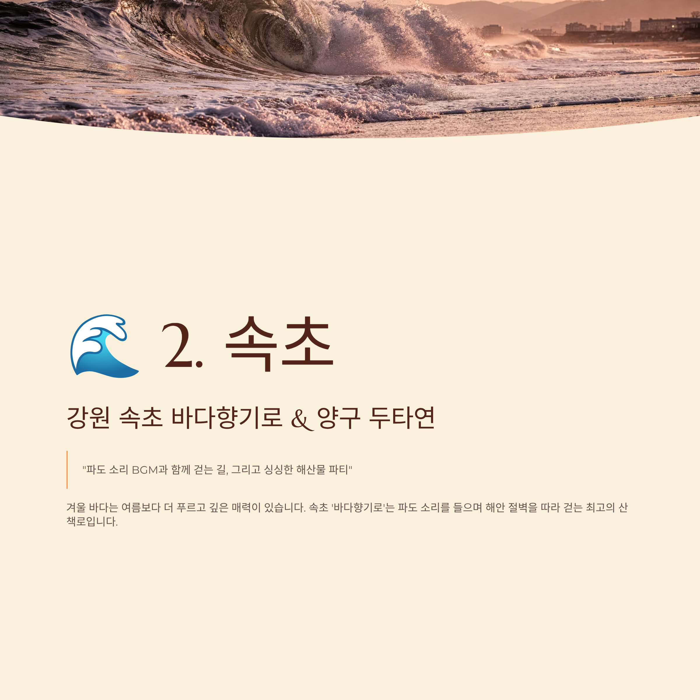 🌊 2. 강원 속초 바다향기로 & 양구 두타연