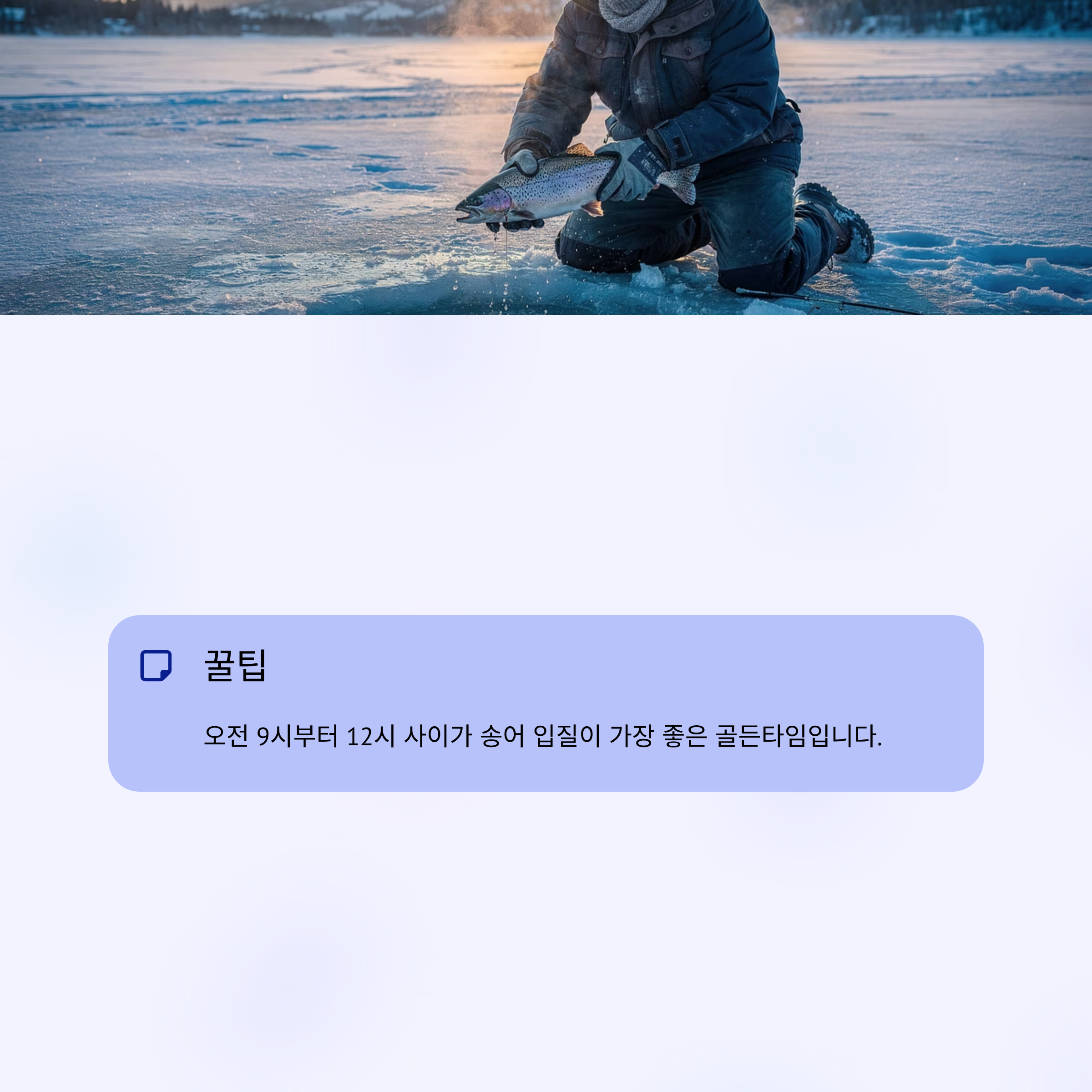 ✔ 꿀팁: 오전 9시부터 12시 사이가 송어 입질이 가장 좋은 골든타임입니다.