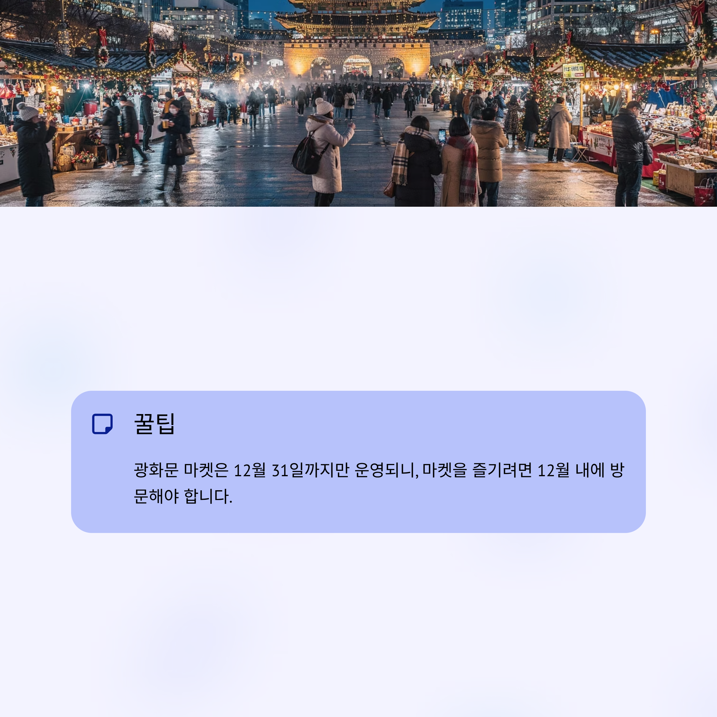 ✔ 꿀팁: 광화문 마켓은 12월 31일까지만 운영되니, 마켓을 즐기려면 12월 내에 방문해야 합니다.