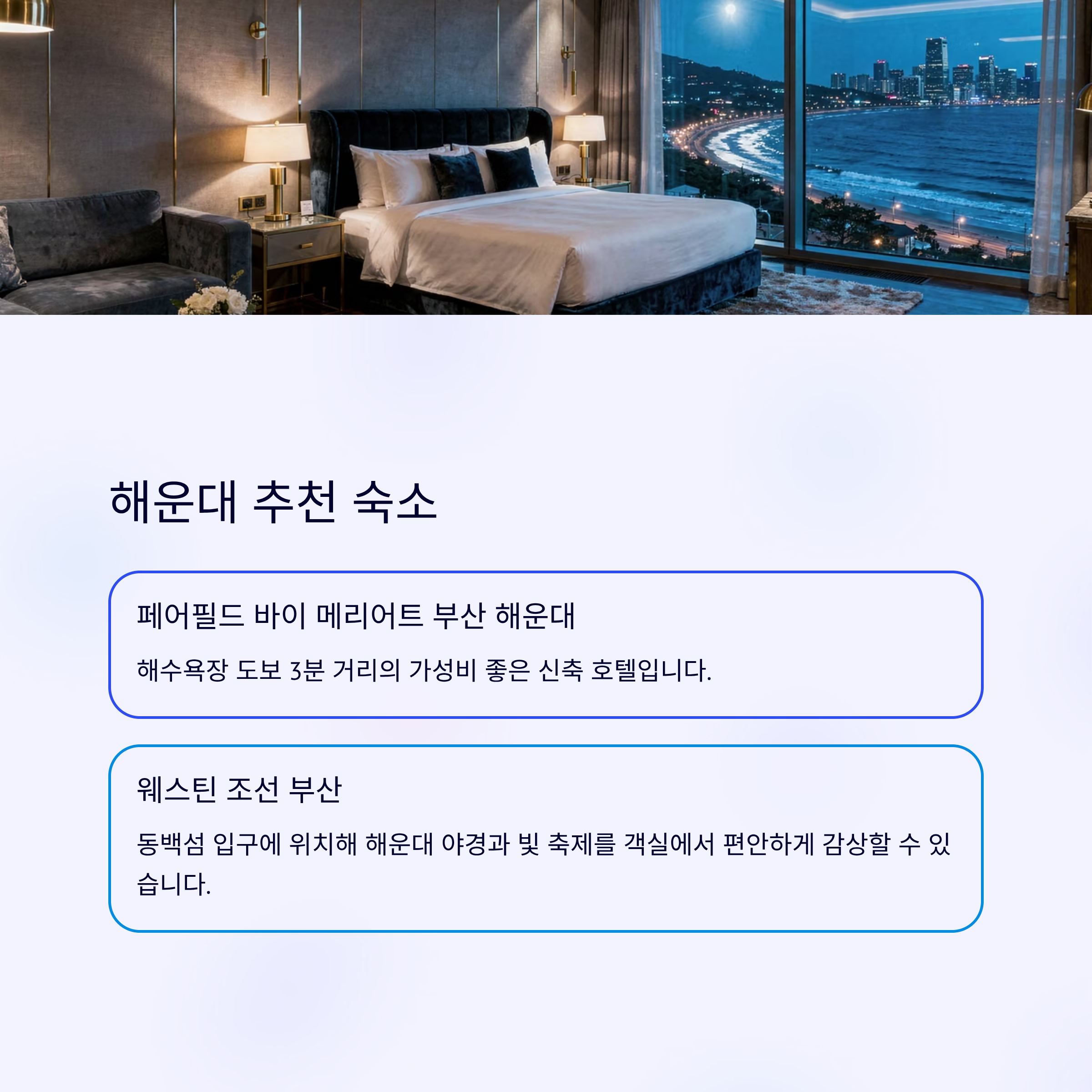 페어필드 바이 메리어트 부산 해운대: 해수욕장 도보 3분 거리의 가성비 좋은 신축 호텔입니다.