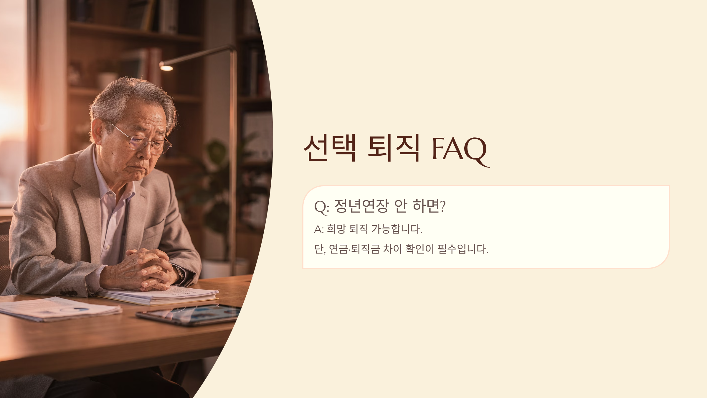 Q: 정년연장 안 하면? A: 희망 퇴직 가능, 연금·퇴직금 차이 확인 필수.