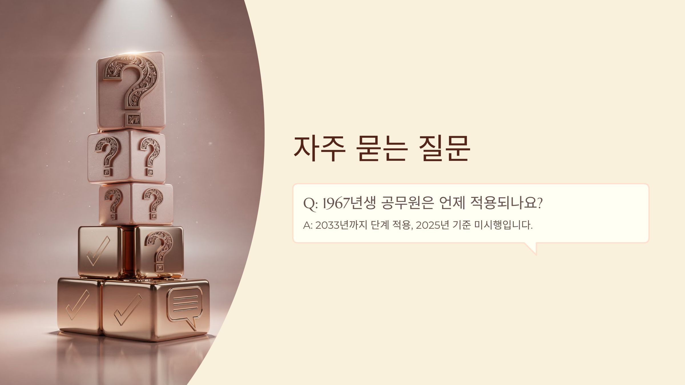Q: 1967년생 공무원은 언제 적용되나요? A: 2033년까지 단계 적용, 2025년 기준 미시행.