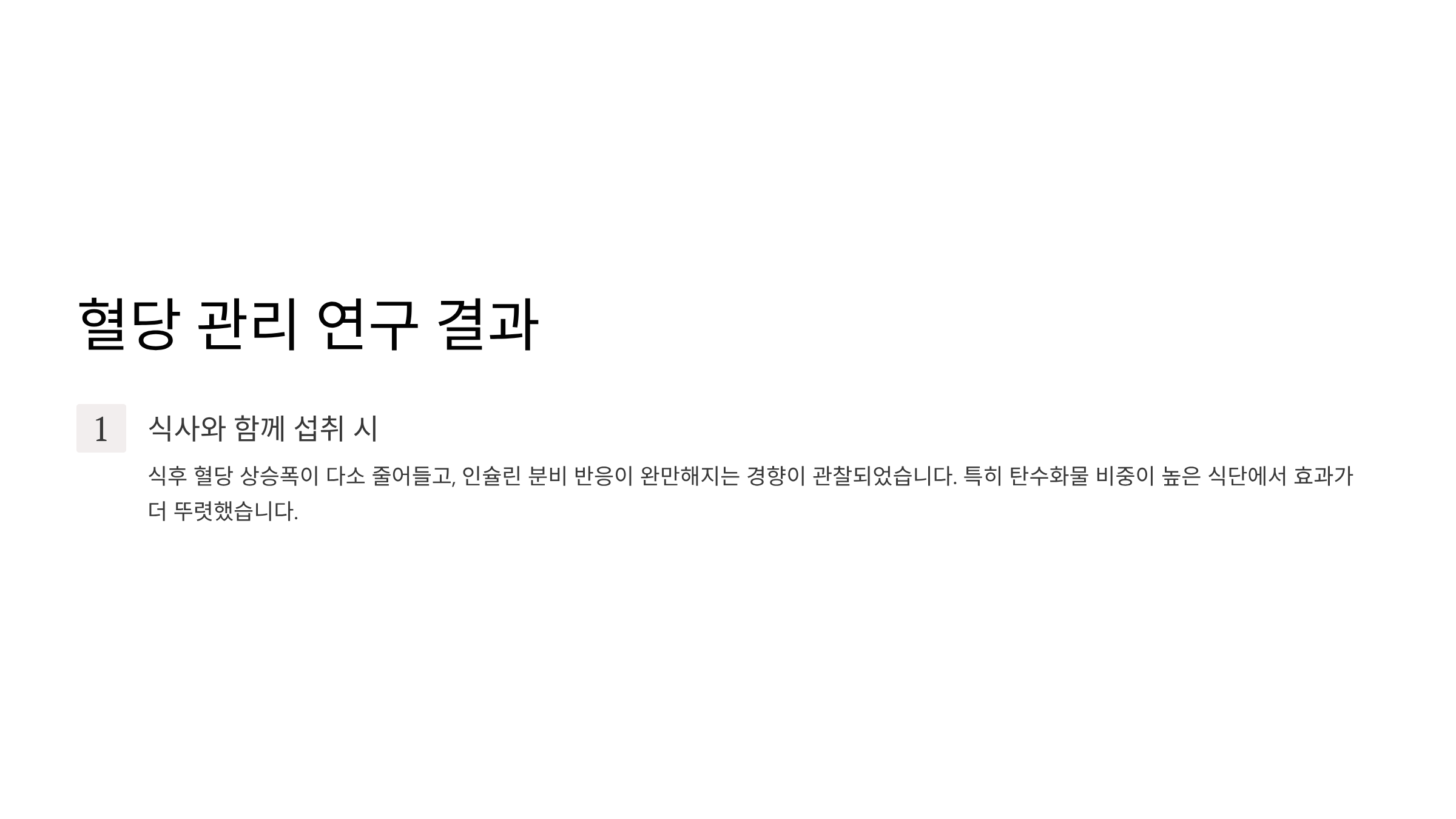 식후 혈당 상승폭이 다소 줄어들고, 인슐린 분비 반응이 완만해지는 경향이 관찰된 연구들이 있습니다. 특히 탄수화물 비중이 높은 식단에서 이 효과가 더 뚜렷하게 나타났습니다.
