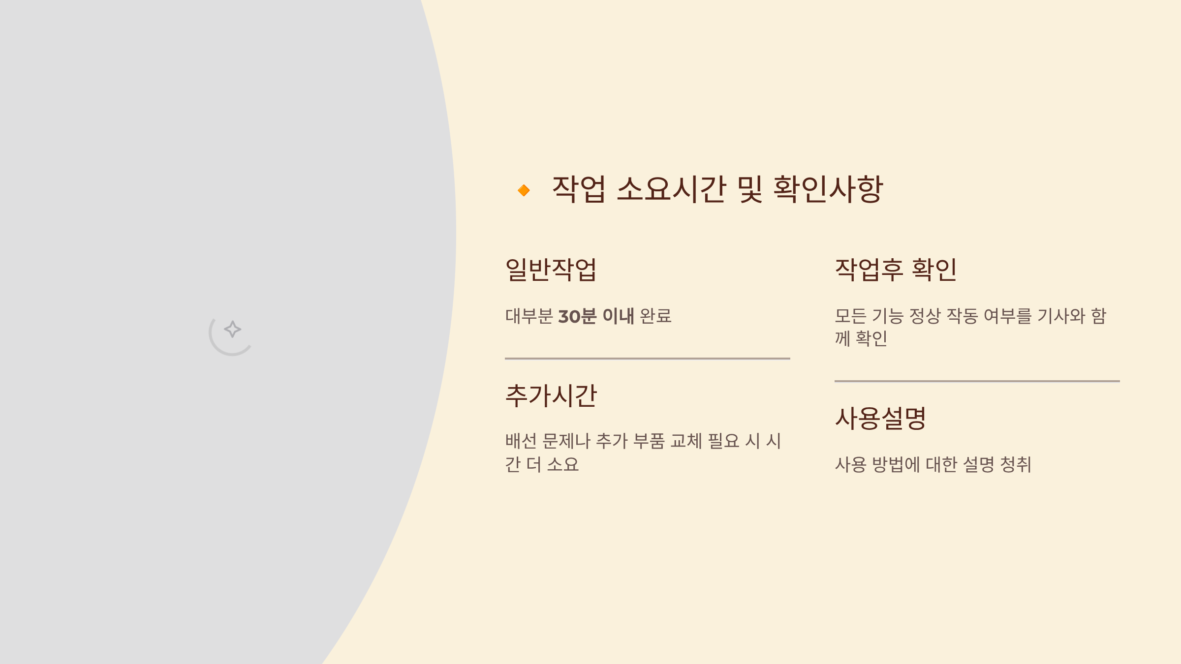 - 추가시간: 배선 문제나 추가 부품 교체 필요 시 시간 더 소요