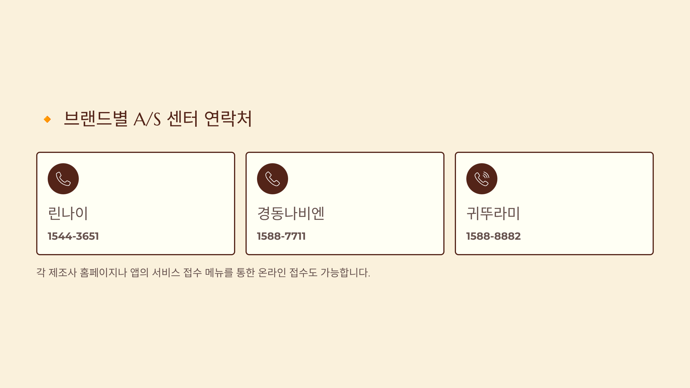 - 온라인접수: 각 제조사 홈페이지나 앱의 서비스 접수 메뉴 이용