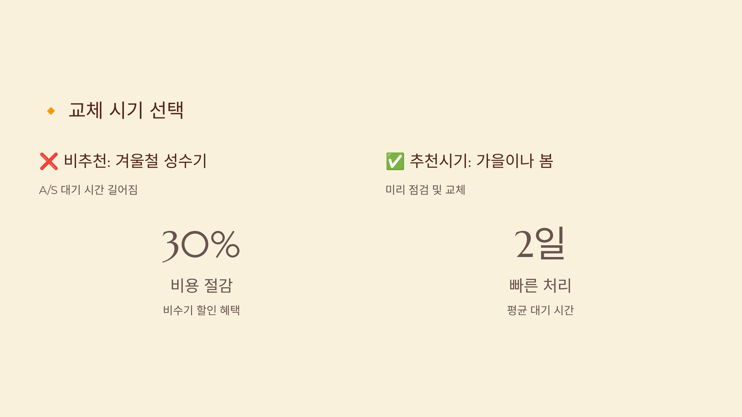 - 추천시기: 가을이나 봄에 미리 점검 및 교체