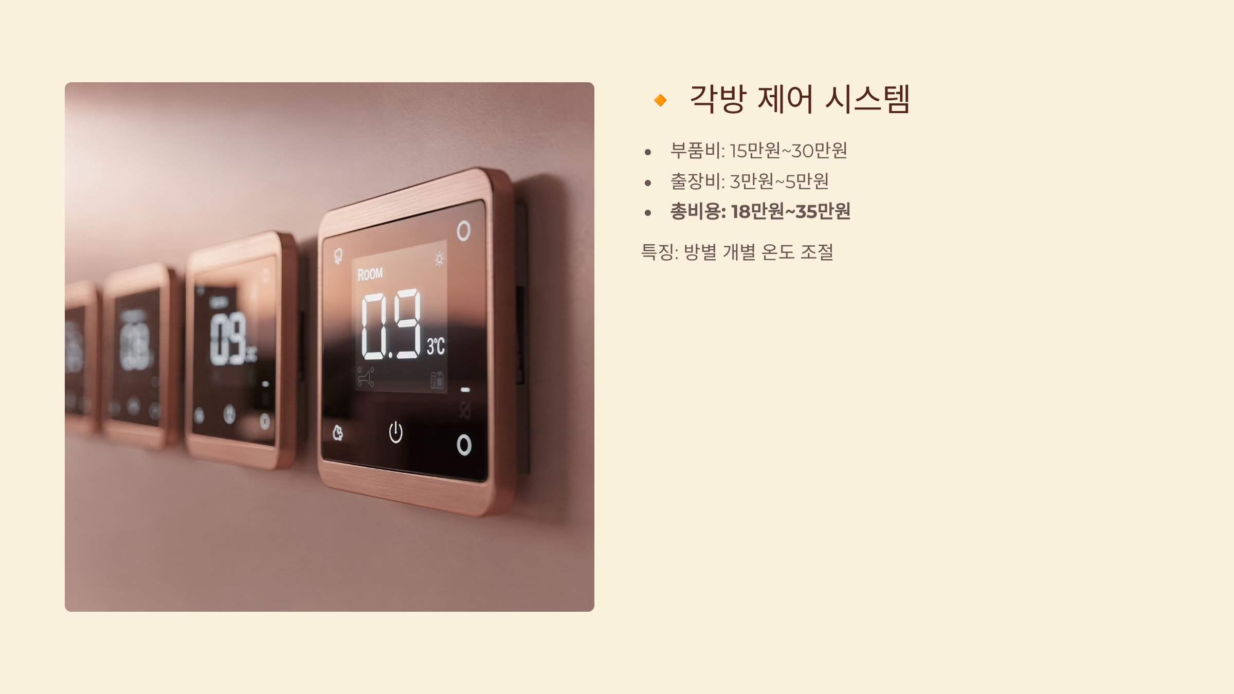 스마트 와이파이 온도조절기는 초기 비용은 높지만 외출 중에도 스마트폰으로 난방을 제어할 수 있어 에너지 절약 효과가 큽니다. 출퇴근 시간에 맞춰 예약 난방이 가능하고, 실시간 온도와 가스 사용량을 확인할 수 있어 장기적으로는 경제적입니다.