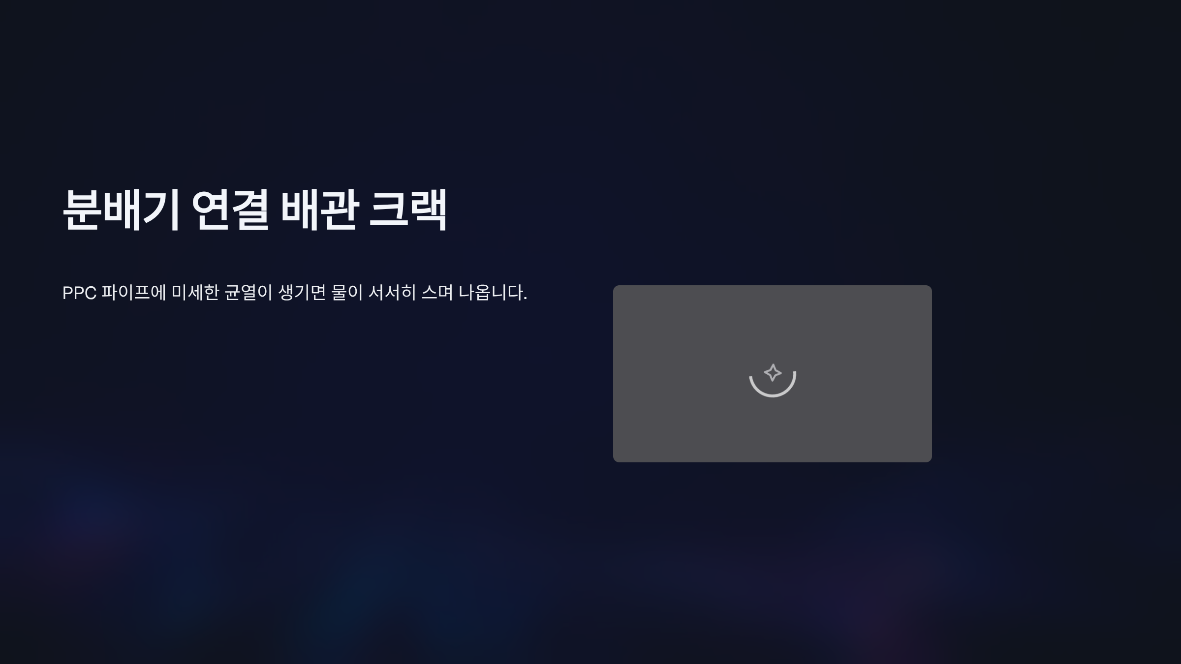 • 분배기 연결 배관 크랙: PPC 파이프에 미세한 균열이 생기면 물이 서서히 스며 나옵니다.