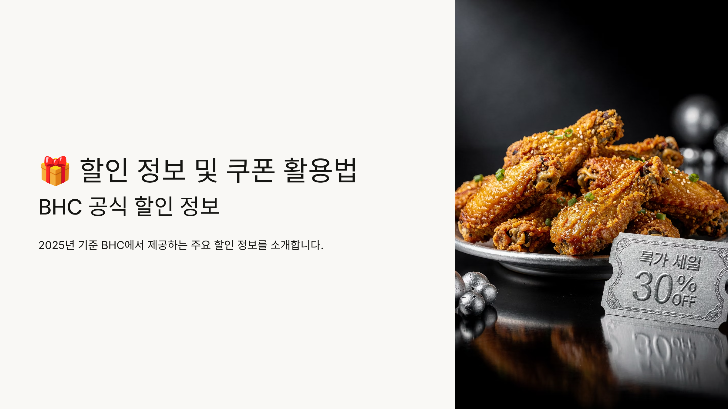 2025년 기준 BHC에서 제공하는 주요 할인 정보는 다음과 같습니다.