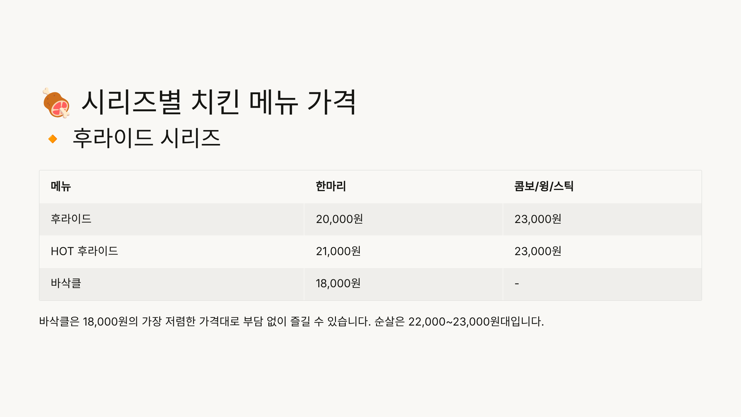 🍖 시리즈별 치킨 메뉴 가격