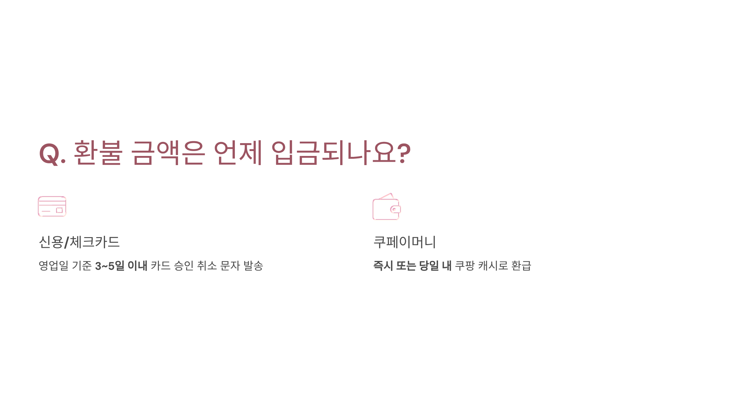 결제 수단에 따라 다릅니다. 신용/체크카드의 경우 보통 영업일 기준 3~5일 이내에 카드 승인 취소가 문자로 날아옵니다. 쿠페이머니로 결제했다면 즉시 또는 당일 내로 쿠팡 캐시로 환급됩니다.