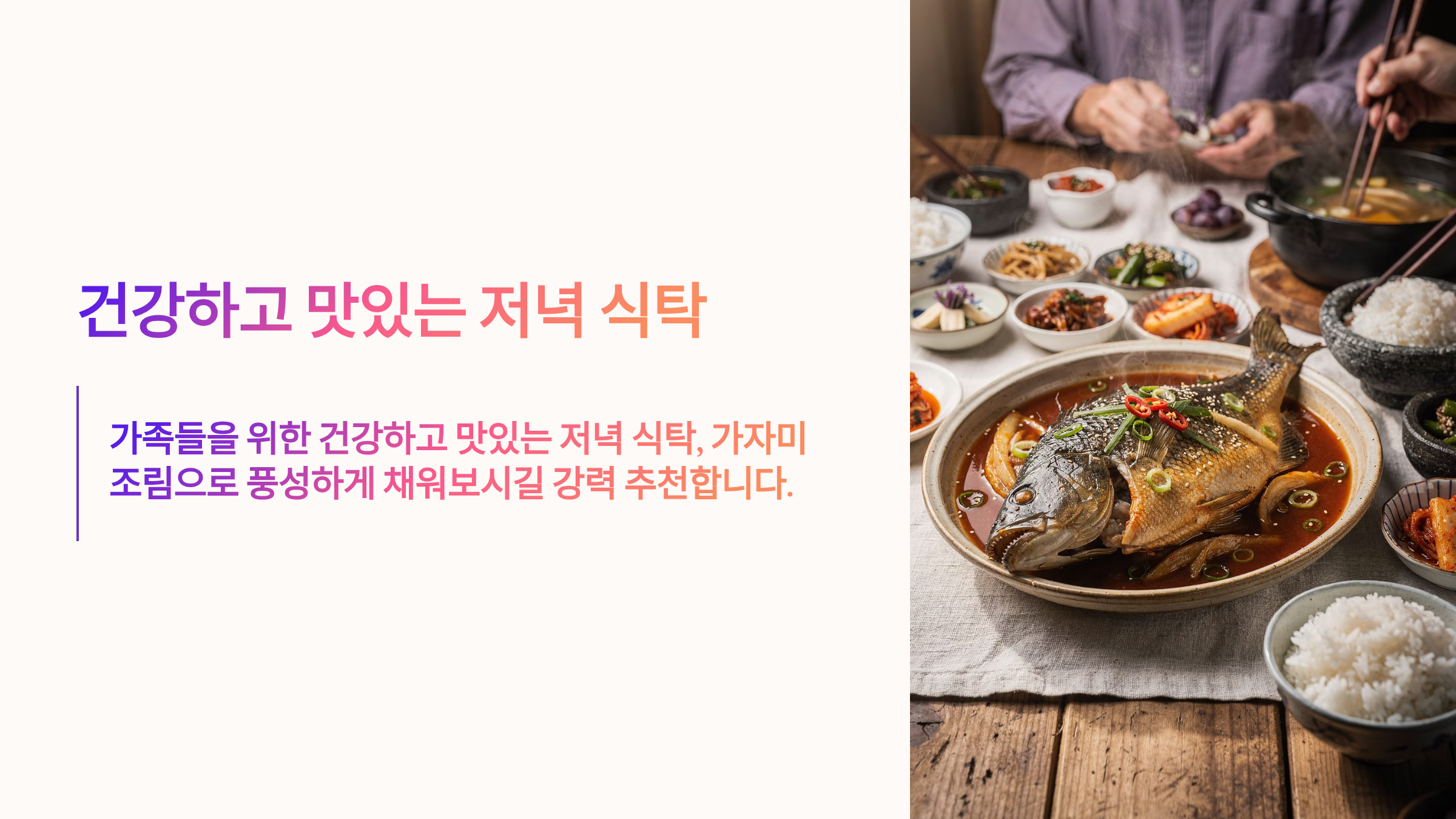 오늘 저녁 메뉴가 고민이시라면, 가격도 착하고 맛도 착한 가자미조림 어떠신가요. 어렵게만 느껴졌던 생선조림, 오늘 알려드린 황금레시피와 팁만 기억하신다면 누구나 요리 고수가 될 수 있습니다. 가족들을 위한 건강하고 맛있는 저녁 식탁, 가자미조림으로 풍성하게 채워보시길 강력 추천합니다.