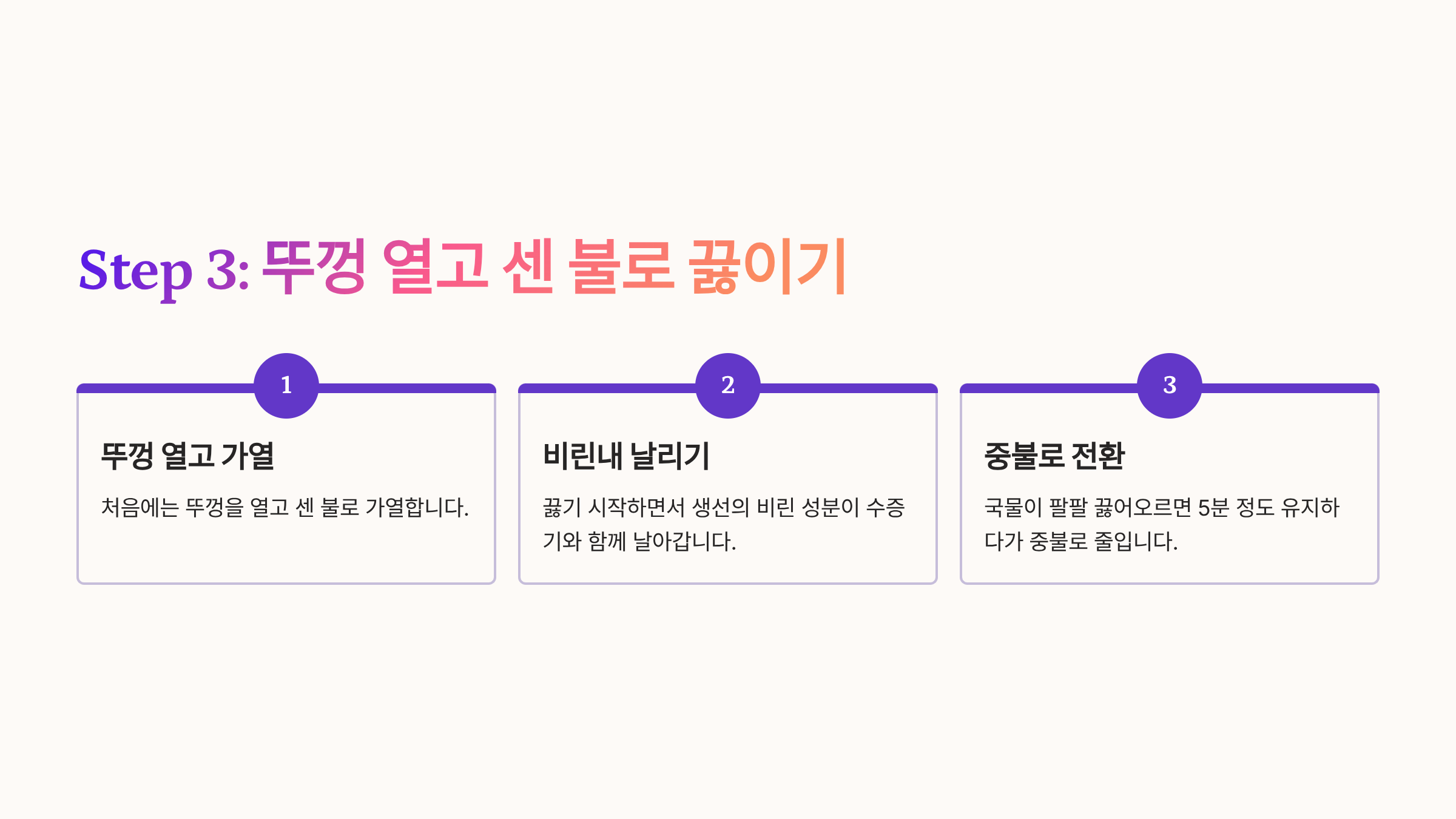Step 3: 뚜껑 열고 센 불로 끓이기 (비린내 날리기)