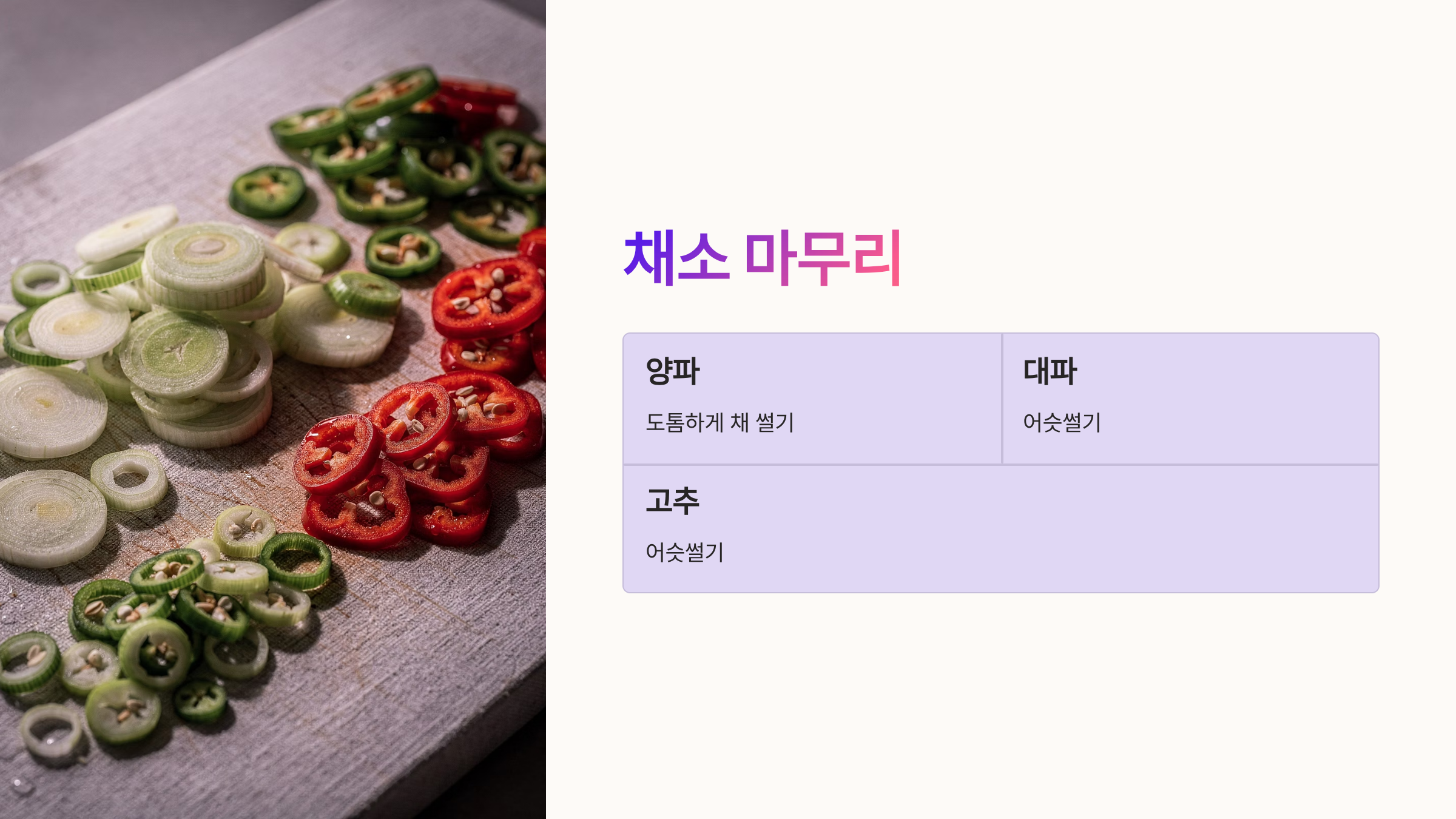 2단계: 부재료 썰기